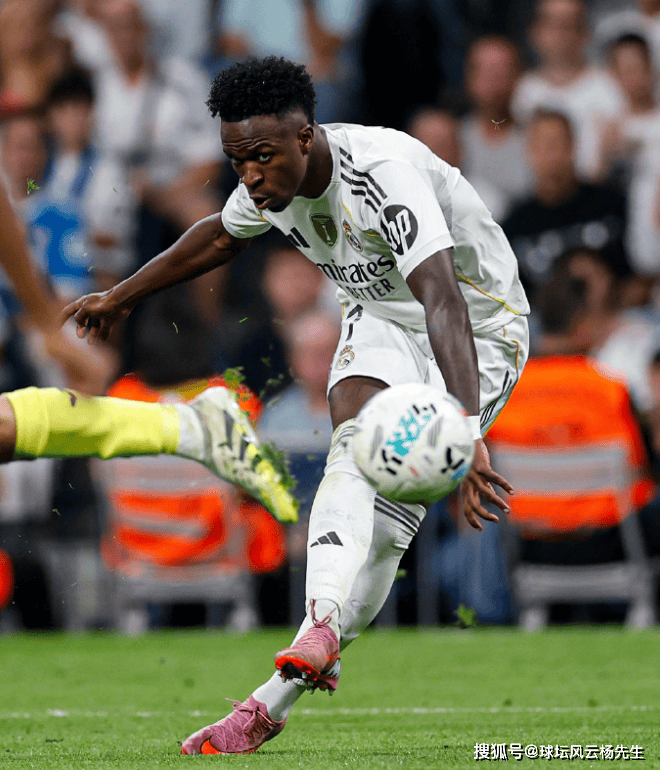 第47分钟,维尼修斯成为了场上的焦点。他如猎豹般快速内切后,用右脚在小角度处打门,球应声入网,帮助皇家马德里率先打破僵局,1-0领先。这一进球不仅展现了维尼修斯出色的个人技术,也让皇马找到了进攻的节奏,给球队带来了信心。